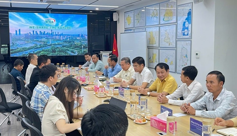 The meeting commenced at the WHA Industrial Zone 1 - Nghe An office, where the delegation was formally introduced to key representatives. Mr. Kampol Noramat, Assistant Director of WHA Industrial Zone Nghe An JSC, presented an overview of WHA Group’s four core business segments: Logistics, Industrial Infrastructure Development, Utilities and Power, and Digital Platforms. He also provided insights into WHA's first international-standard Smart Eco Industrial Zone in Nghe An, emphasizing its potential to drive sustainable industrial growth.