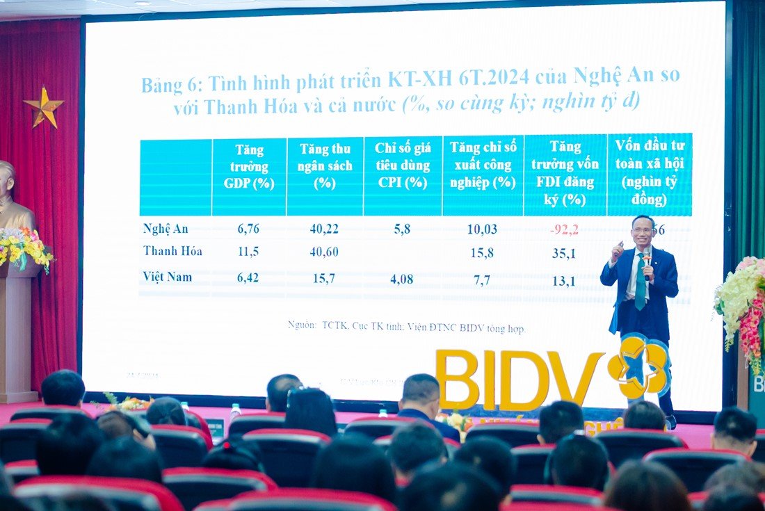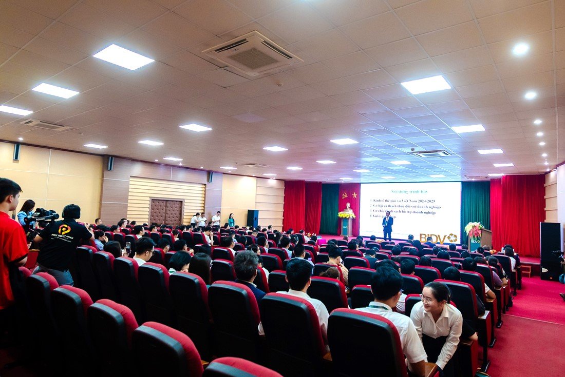 Mr. Can Van Luc, Chief Economic Expert at BIDV and Member of the National Financial and Monetary Policy Advisory Council, delivered a comprehensive analysis of global economic trends, including the slowdown and green growth initiatives. He provided an insightful forecast of Vietnam's economic performance and growth prospects, along with a discussion on opportunities and challenges for businesses in the current economic environment.