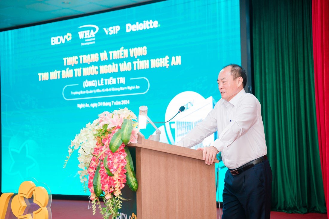 Mr. Le Tien Tri, Head of the Management Board of Dong Nam Nghe An Economic Zone, reviewed the Foreign Direct Investment (FDI) achievements in 2023 and strategic plans for 2024, emphasizing future expansion plans for industrial parks in Nghe An.