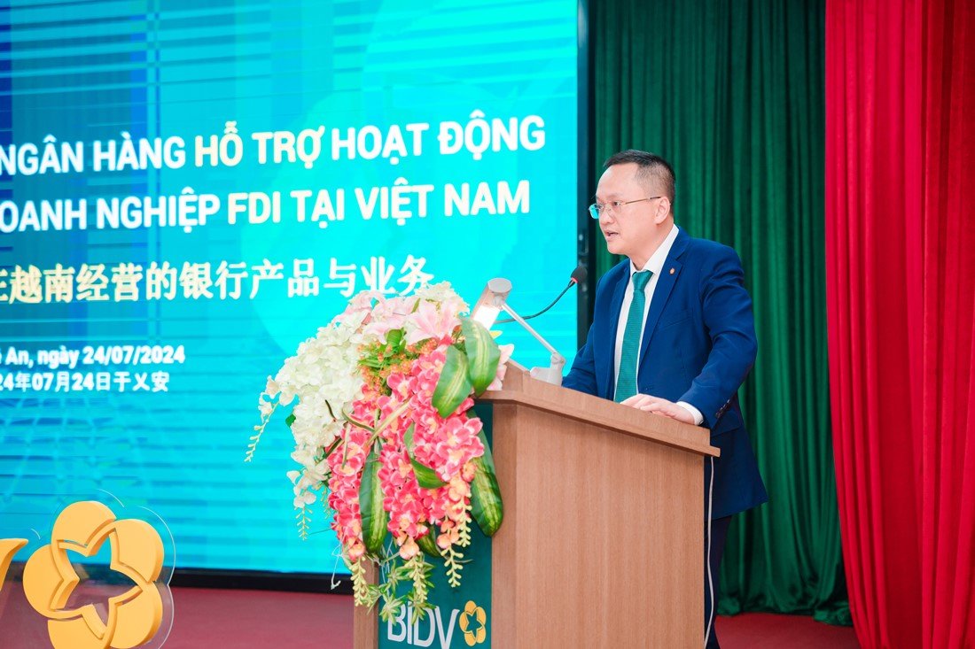 Mr. Nguyen Ngoc Tu, Deputy Director, FDI Department, BIDV, presented its banking products and services designed to support FDI enterprises, enhancing their business operations in Vietnam.