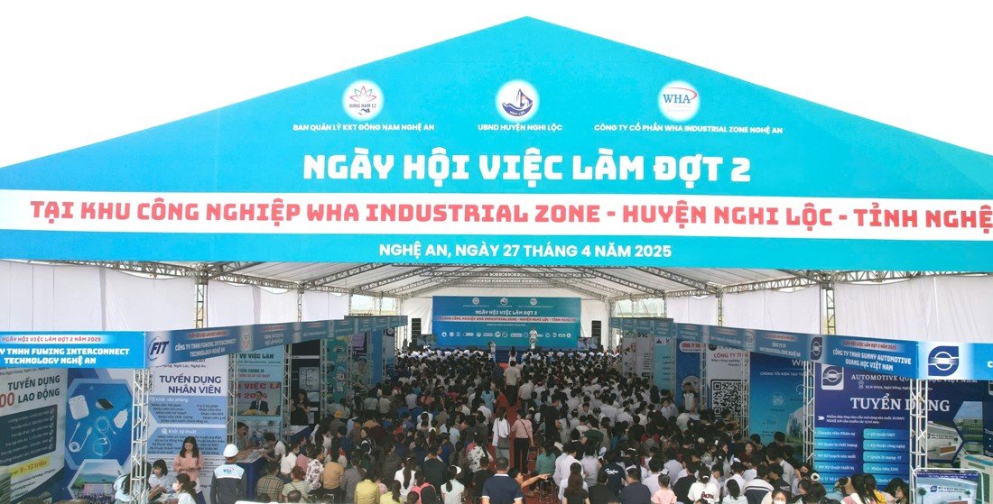 Nghe An, Vietnam – WHA Industrial Zone Nghe An, in collaboration with the Dong Nam Economic Zone Management Board and the People's Committee of Nghi Loc District, successfully organized the 2025 WHA Job Fair on Sunday, April 27th. The event, held at WHA Industrial Zone Nghe An, attracted more than 2,000 participants, including local workers, students, and business representatives, creating a vibrant and energetic atmosphere.