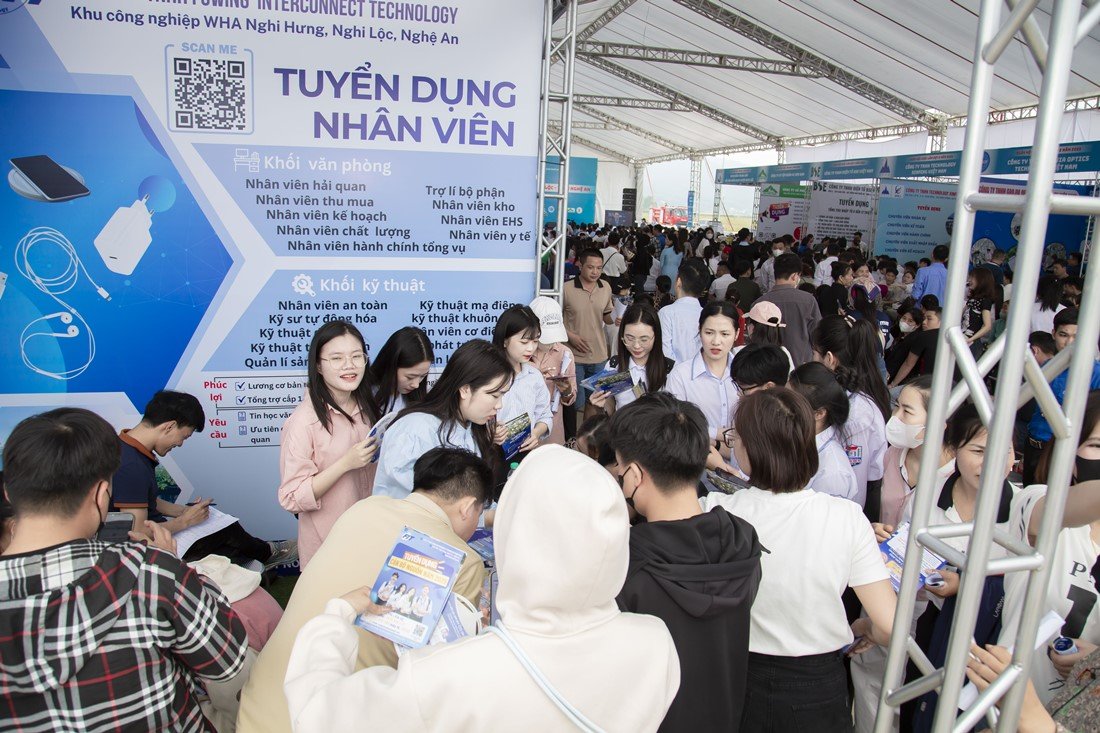 The job fair aimed to connect local job seekers with employment opportunities within WHA Industrial Zone 1 - Nghe An and surrounding areas. Participating companies offered a diverse range of positions across sectors such as electronics, automotive components, and food processing.