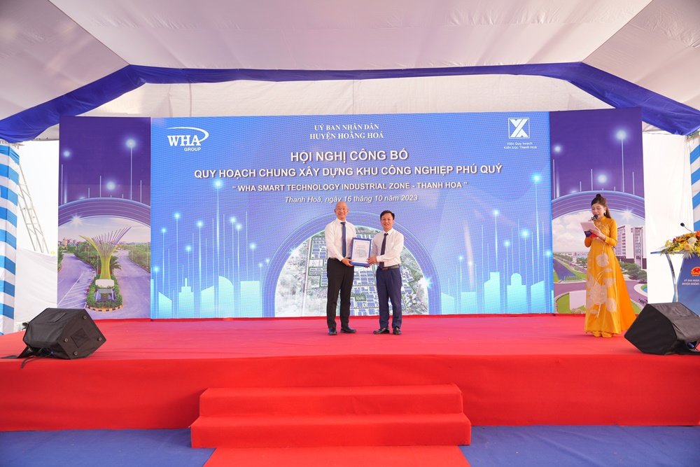 Mr. PajongwitPongsivapai, Chief Operating Officer, WHA Industrial Development PLC received the Approved Master Plan of Phu Quy industrial zone -WHA Smart Technology Industrial Zone – Thanh Hoa from Mr. Le Thanh Hai, Chairman of Hoang Hoa District People's Committee.
