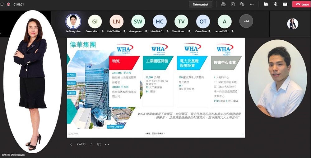 Ms. Anchalee Prasertchand, Director – International, WHA Industrial Development, and Mr. Le Trung Hieu, Manager - Customer Development, WHA Industrial Management Services Vietnam Co., Ltd., were guest speakers at the recent virtual seminar entitled “Industrial Land Transaction in the Post-Pandemic Era” organized by EY Vietnam.