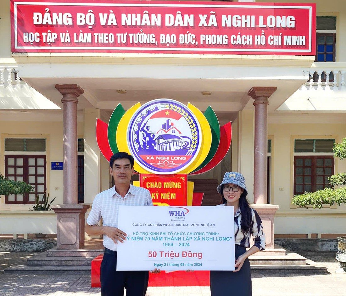 On August 21, 2024, WHA Industrial Zone Nghe An provided financial support to the communes of Nghi Long, Nghi Hung, and Nghi Thuan, acknowledging their rich heritage and the vital role they play in the socio-economic development of the region. This contribution is part of WHA's broader mission to foster sustainable development and improve the quality of life in the communities where it operates.