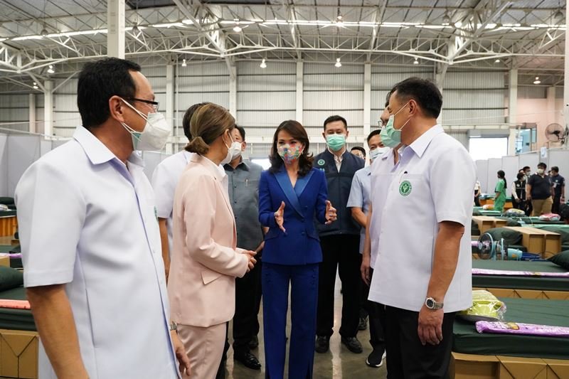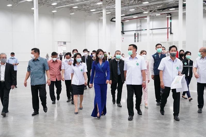 Shown in photo: Mr. Anutin Charnvirakul (3rd left), Deputy Prime Minister and Public Health Minister, presides over the grand opening of a 1,300-bed field hospital, "Samut Prakan Ruamjai 5 (WHA)", in the presence of Mr. Wanchai Kongkasem (2nd right), Samut Prakan Provincial Governor; Ms. Nantida Kaewbuasai (2nd left), President of Samut Prakan Provincial Administrative Organization and Ms. Jareeporn Jarukornsakul (3rd right), Chairman and Group CEO of WHA Corporation PCL; along with other senior public health officers, held at WHA Mega Logistics Center.