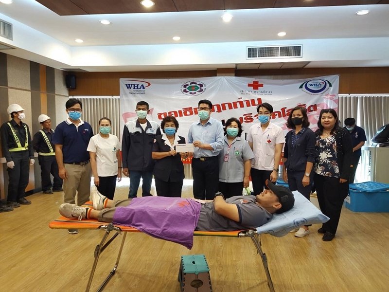 The Eastern Safety and Environmental Club (ESEC), WHA Eastern Industrial Estate Co., Ltd., together with the Rayong Provincial Red Cross, held the 42nd blood donation event at the Eastern Seaboard Industrial Estate (Rayong) (ESIE). A total of 33,650 cc. of blood was collected from donors, including ESEC members, WHA employees and customers, as well as residents of the neighboring community. The much-needed blood will be used in local hospitals to help patients and save lives.