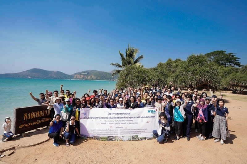 WHA Industrial Development PLC a subsidiary of WHA Group recently held a 2-day visit to WHA Eastern Seaboard Industrial Estate 1 (WHA ESIE 1), Eastern Seaboard Industrial Estate (ESIE) (Rayong) and Toei Ngam Beach, Sattahip Naval Base in Chonburi province. WHA staff members, community leaders and local residents of neighboring communities joined. The group observed industrial estates’ waste water management and were given an overview of the Project’s mission to protect and preserve Thailand’s tropical ecosystem. Led by Ms. Siyaphas Chantachairoj, Director – Corporate Marketing, WHA Corporation PCL, the group participated in coral planting activities and released the sand-headed shark to maintain the ecological balance of the sea as well as to promote environmental awareness.
