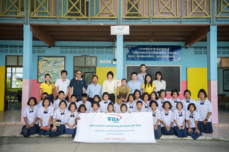 Ms. Siyaphas Chantachairoj (3rd row, center), Director – Corporate Marketing, WHA Corporation PCL and Mr. Sunya Baopoonthong (3rd row, 4th left), Corporate Affairs Manager, WHA Industrial Development PLC, recently attended a delivery ceremony of newly-installed bird netting at Ban Nong Rai School in Rayong province. This project, made possible by funds raised by WHA Group and generous donors from the WHA Investors Club & Golf charity event, aims to create a cleaner and safer classroom environment for students.