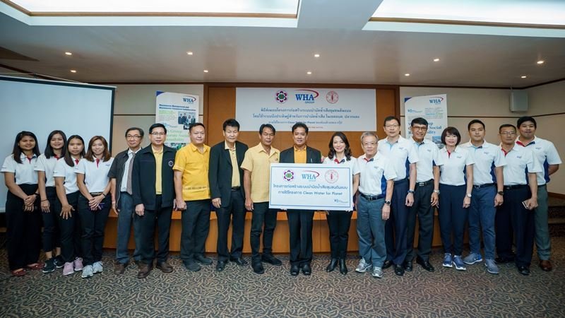 - Ms. Jareeporn Jarukornsakul, Chairman and Group CEO of WHA Corporation PCL, hands over the completed Wastewater Management and Treatment System to the Pluak Daeng Sub-district Administrative Organization, during an official ceremony in Rayong.