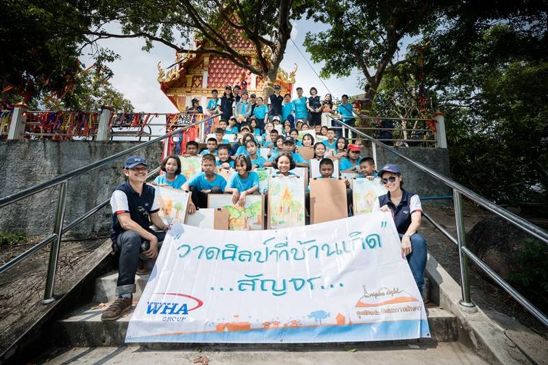 For the 6th consecutive year. WHA Group, led by Ms. Siyaphas Chantachairoj, Director – Corporate Marketing, WHA Corporation PCL, held the Art Camp for Mayathom 1 - 3 students from seven public schools in the Eastern Economic Corridor. During the 3-day activity, the children visited Wat Khao Tabaek, Nong Kho reservoir and the aerated lagoon in WHA Chonburi Industrial Estate 2 (WHA CIE 2), to draw creative inspiration for their artworks. The team of instructors from Inspiresight explained to the youth the fundamentals of colors, shapes and styles while highlighting the importance of art in their daily lives.