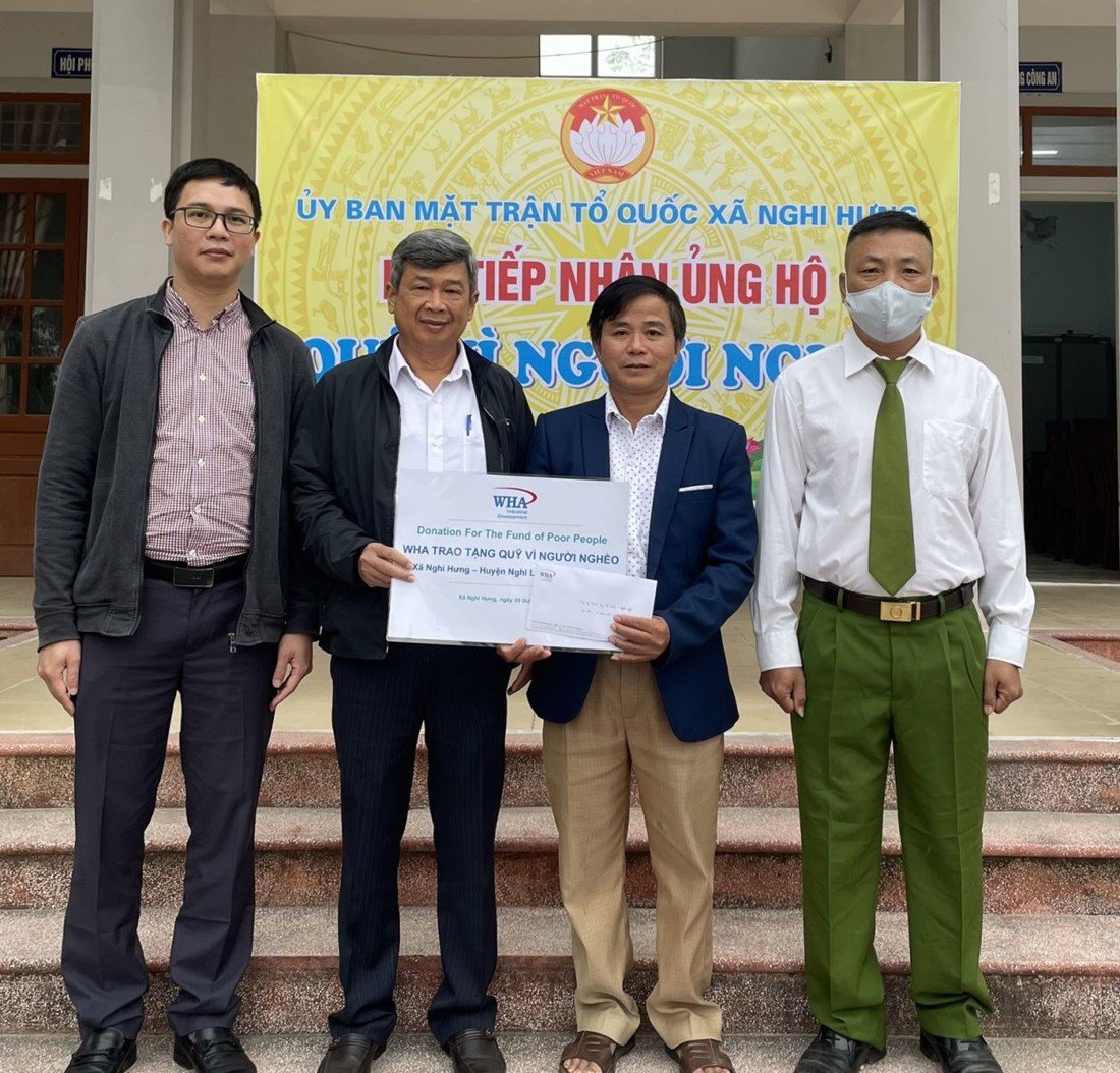 As part of its CSR program, WHA Industrial Zone Nghe An JSC presents a donation to the Fatherland Front Committee of Nghi Hung commune, Nghi Loc district, Nghe An province to help disadvantaged families in the area. The funds will be used for projects and activities that will contribute to the overall development of the Nghi Hung commune.