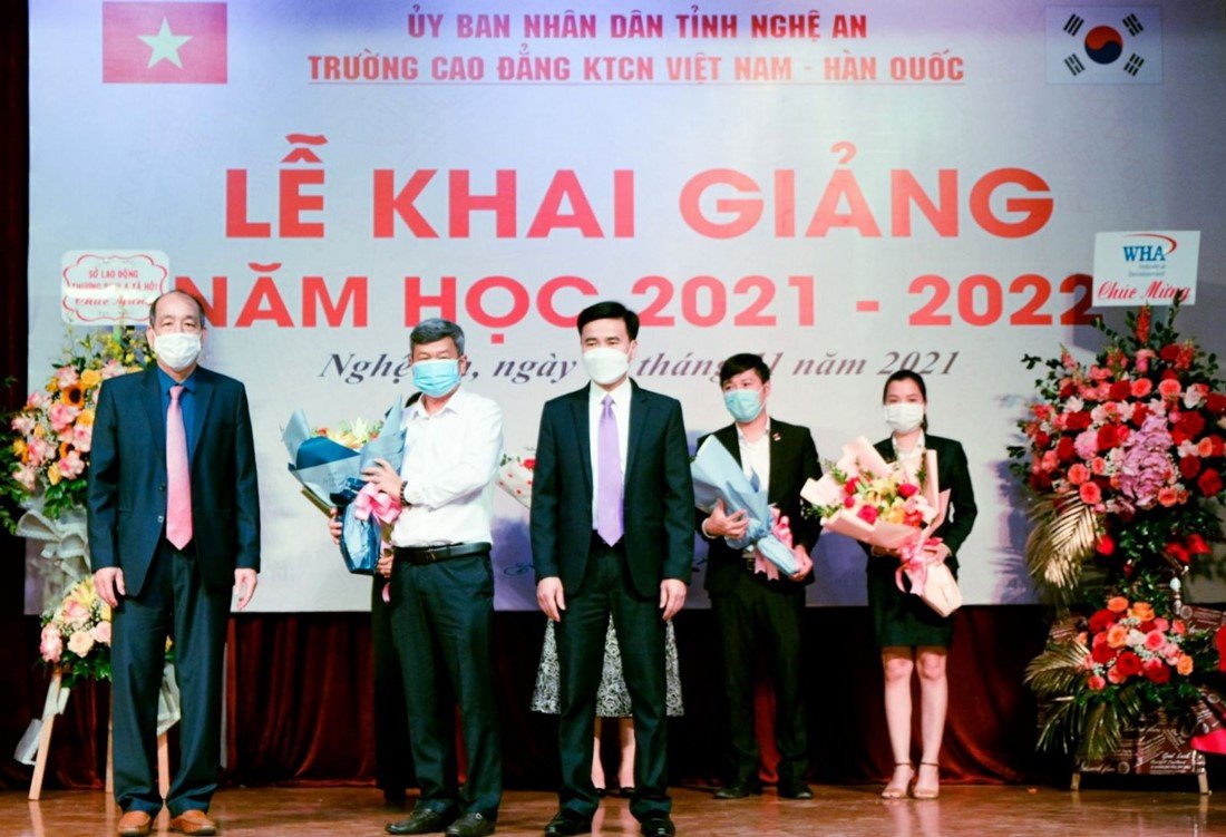 On November 8, the Vietnam-Korea Industrial Technology Vocational College held the opening ceremony for the new academic year 2021-2022, with the participation of Nghe An officials, executives of companies that provide training programs, school officials and incoming students.