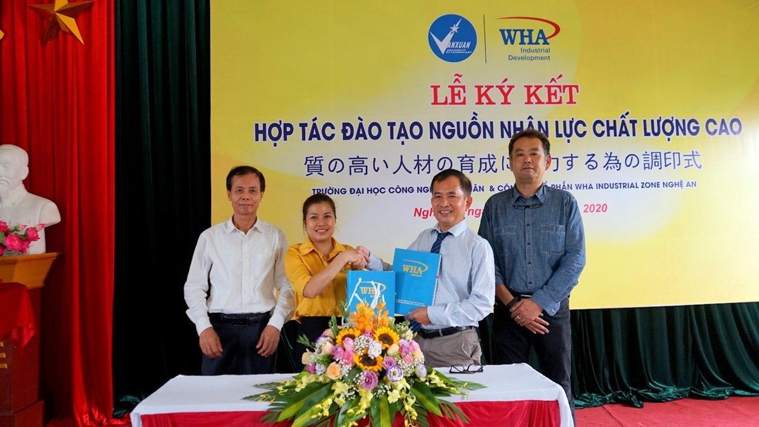 WHA Industrial Zone Nghe An JSC and Van Xuan University of Technology jointly announced the signing of a Memorandum of Understanding (MOU) on cooperation, information exchange and promotion of education, training, and recruitment of high qualified workforce for existing and future factories in the Industrial Zone.