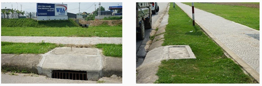 Wha Industrial Zone 1 - Nghe An urgently repaired and installed 2 drainage manholes upon discovering the incident. This was done to improve the efficiency of water evacuation, help prevent local flooding which often occurs during the rainy season, and ensure environmental sanitation at the intersection of Asian Highway 1 and Highway 7C.