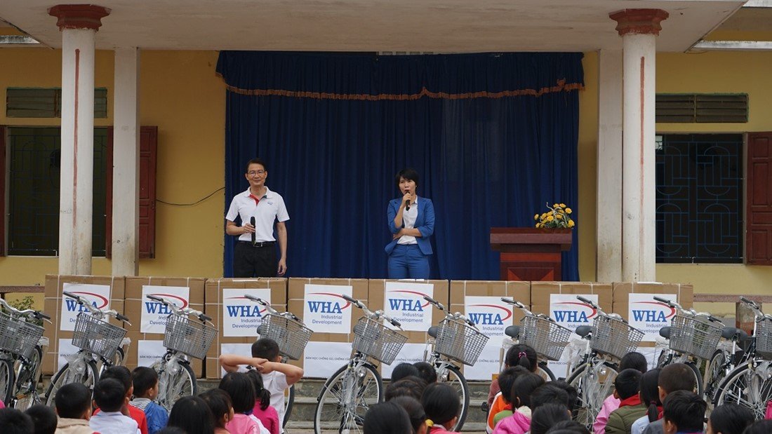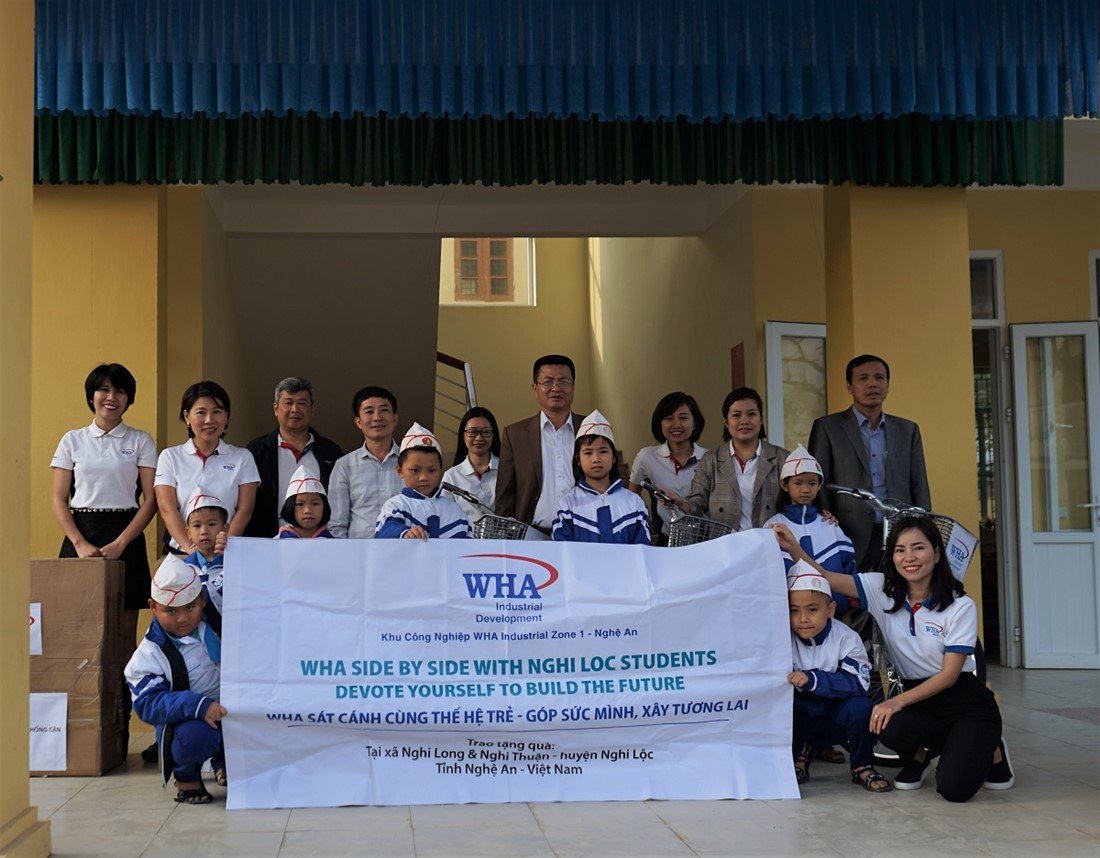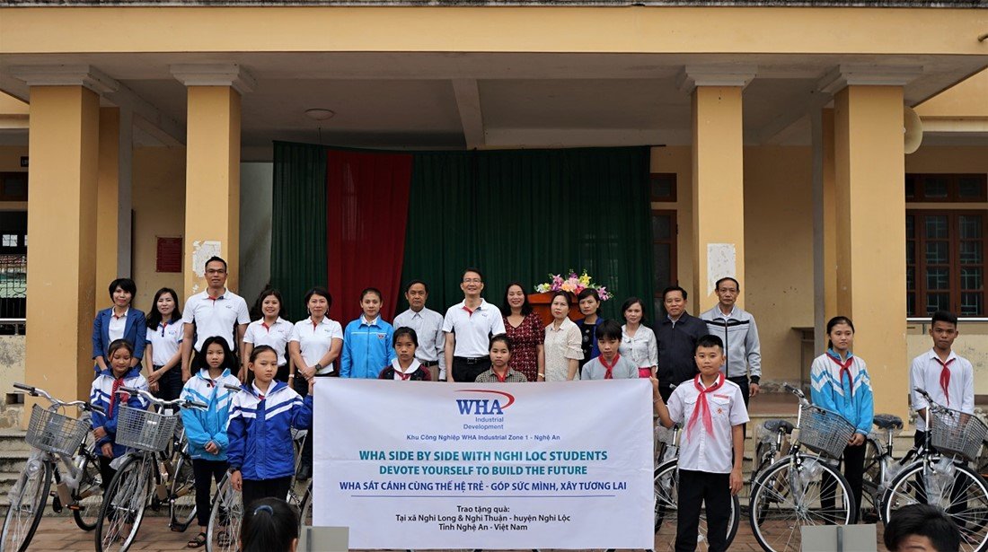 Under the theme "WHA side by side with Nghi Loc students - Devote Yourself to Build the Future", WHA Industrial Zone Nghe An Joint Stock Company distributed bicycles and desks to 40 low-income students in Nghi Long and Nghi Thuan communes - Nghi Loc district - Nghe An province.