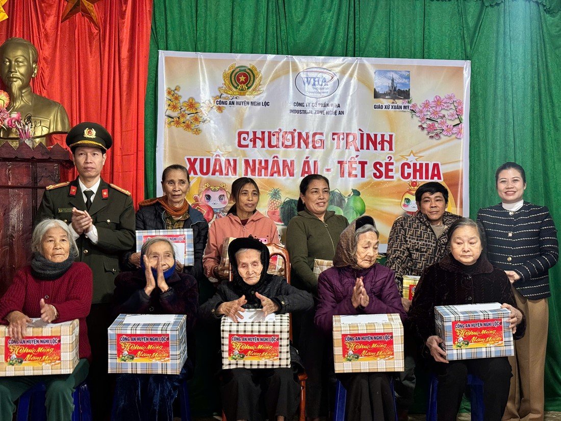 WHA joined the Nghi Loc District Police to deliver Tet gifts to impoverished families at Xuan My Parish. The police contributed essential items, while WHA provided 20 gift sets totaling 10,000,000 VND, further spreading the joy of the season.