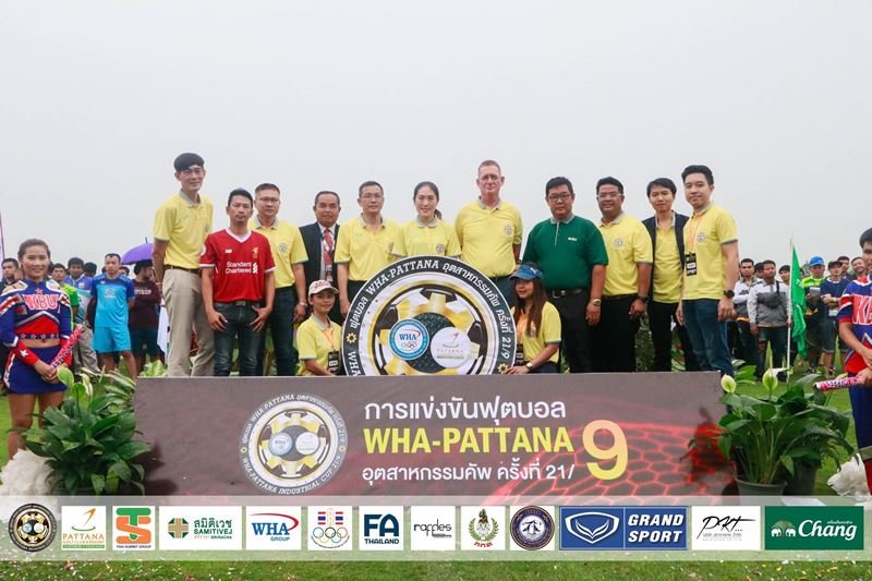 The 21/9th WHA-Pattana Industrial Football Cup, featuring employees from industrial estates located in the Eastern Economic Corridor, was held recently at the Pattana Golf Club and Resort, Chonburi Province. Mr. Suwad Kidsopon (5th left), Senior Site Superintendent, ESIE (Rayong), represented WHA Industrial Development. As part of its CSR initiative, WHA Group was the title sponsor of the friendly competition that aimed to encourage solidarity and camaraderie among sports enthusiasts.