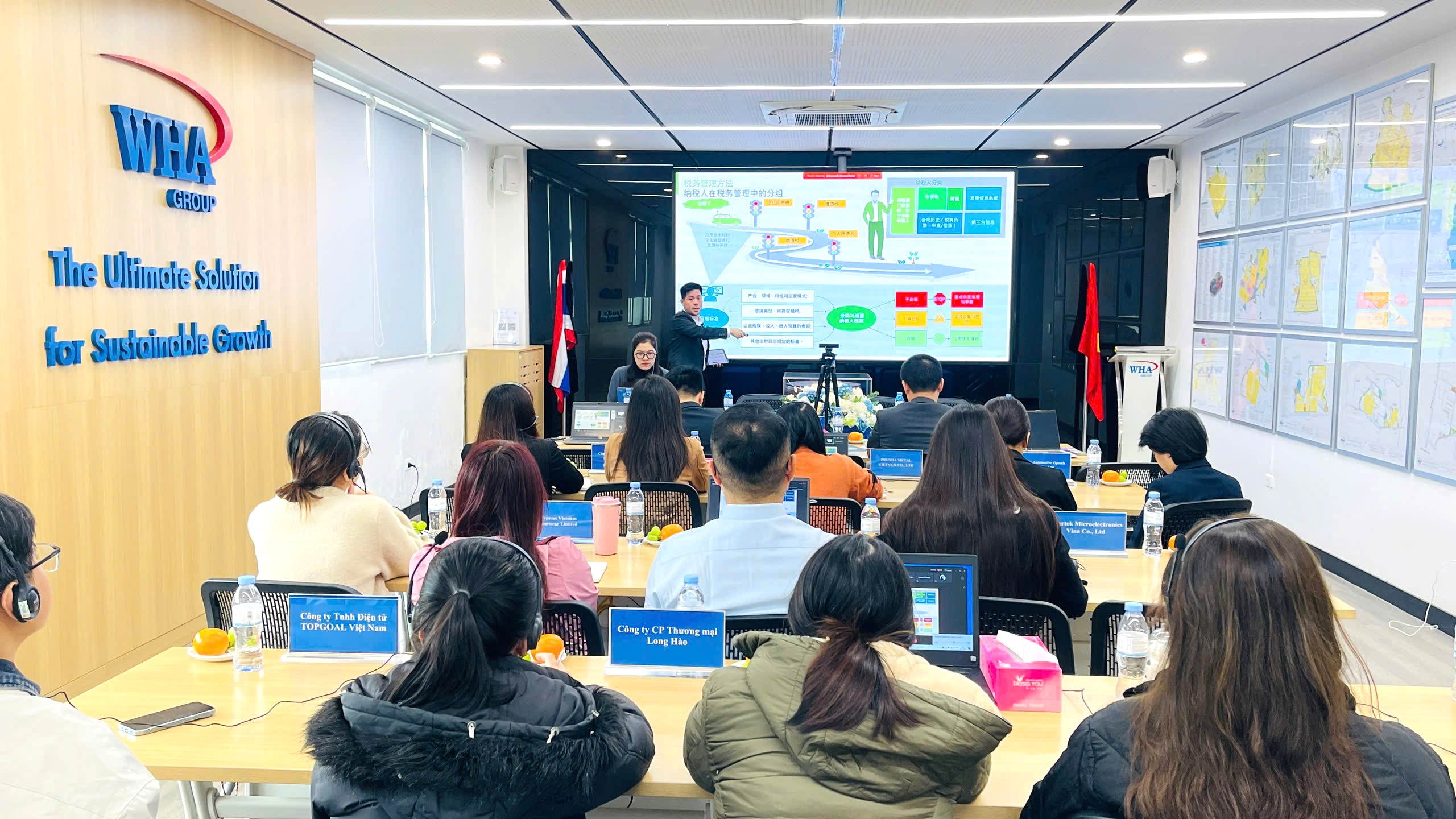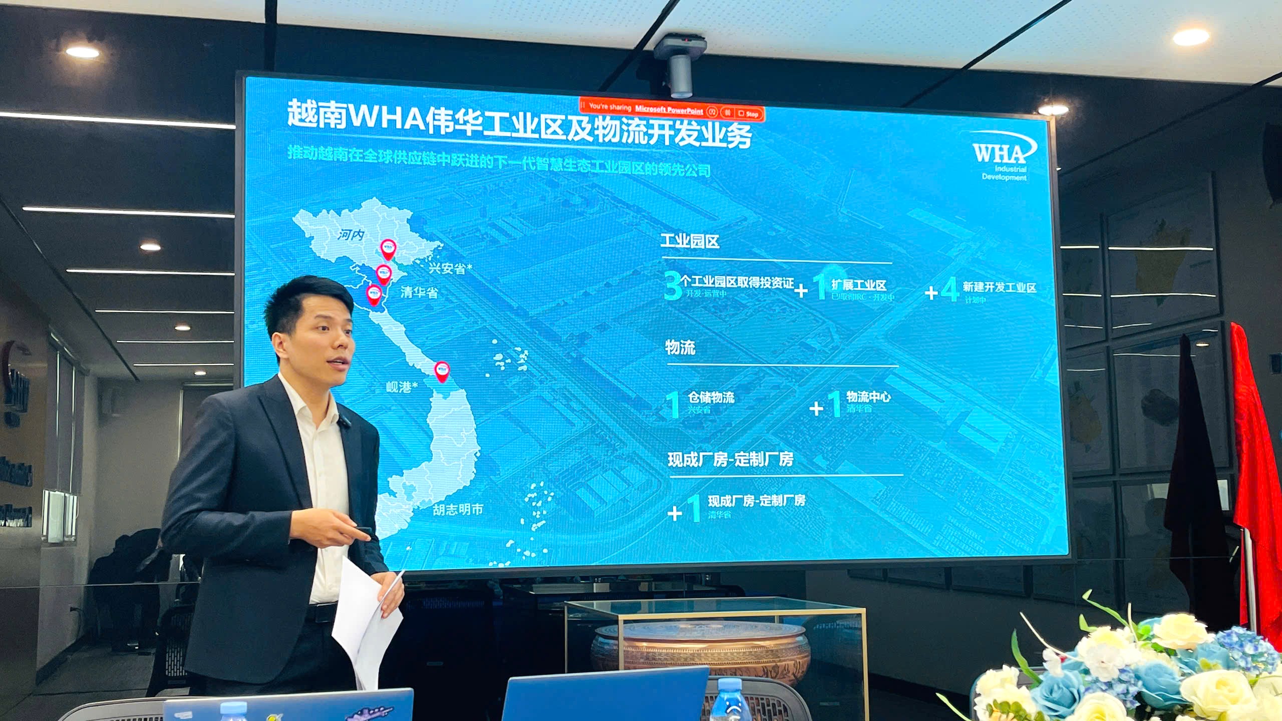 在研讨会的最后环节,WHA Vietnam高级经理黎中孝先生(Mr. Le Trung Hieu)介绍了公司在越南快速扩大的工业与物流生态系统。他重点阐述了WHA在乂安与清化两省开发的Smart–Eco智慧生态工业区的规模与潜力,这些园区融合国际标准的公用事业、智能化基础设施及充足的劳动力,为高科技、电子、汽车零部件、包装、纺织及食品产业提供卓越落地条件。