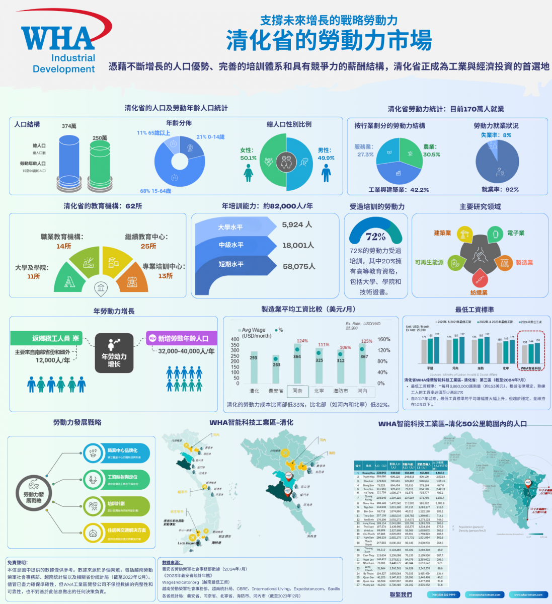 清化省人口374萬,其中250萬人屬於勞動年齡層。目前約170萬人已就業,為產業擴張提供了堅實的勞動力基礎。