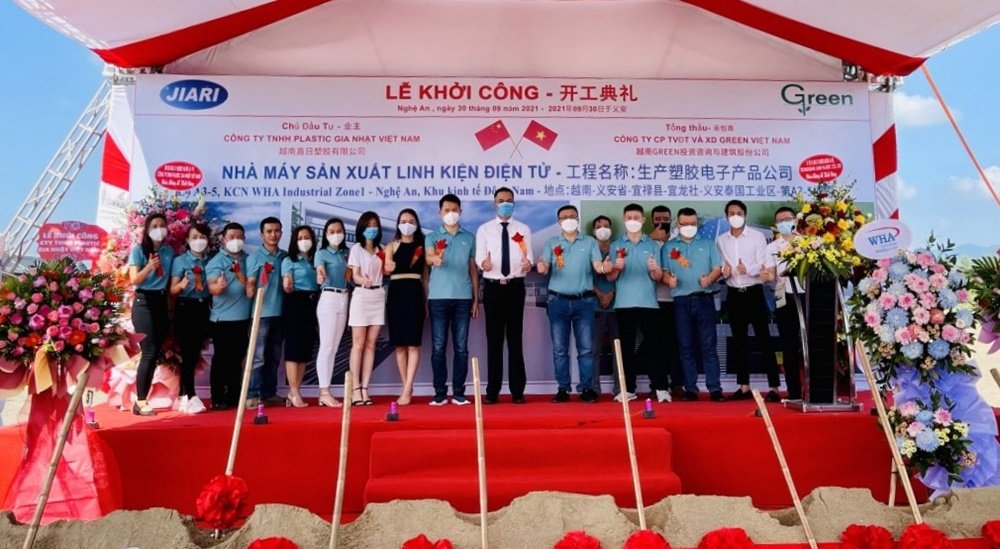 Sáng ngày 30/09/2021, Lễ khởi công Dự án nhà máy Công ty TNHH Plastic Gia Nhật Việt Nam đã được long trọng tổ chức tại Khu công nghiệp WHA Industrial Zone 1 – Khu kinh tế Đông Nam Nghệ An, huyện Nghi Lộc, Nghệ An. Được trang bị khảng năng sản xuất tiên tiến, nhà máy mới sẽ giúp công ty mở rộng sản xuất, đáp ứng nhu cầu ngày càng tăng trong khu vực về các sản phẩm linh kiện nhựa cho thiết bị điện tử.