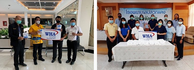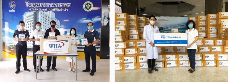 WHA teams were also busy distributing KN-95 masks and hand sanitizers to Pluakdaeng Hospital in Rayong, the Pattaya Administrative Office and other public institutions in the Eastern Economic Corridor. They also went to Maenamkoo district in Rayong to provide support for the manufacture of masks for monks and villagers.